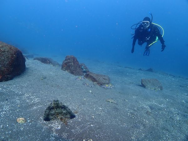 深場のニシキフウライウオを見て浅場へ戻ると、巨大なセミホウボウ