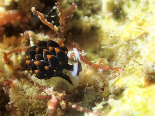 田子は器材を背負ってから30歩で乗船、港内のポイントは出航してから5分で到着というアクセスの良さ。そして、ウミウシも盛りだくさんです!