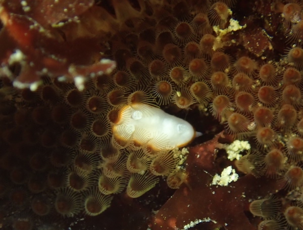 餌に埋もれるボンボリイロウミウシ