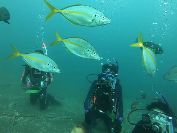 人馴れした魚たちに囲まれます。